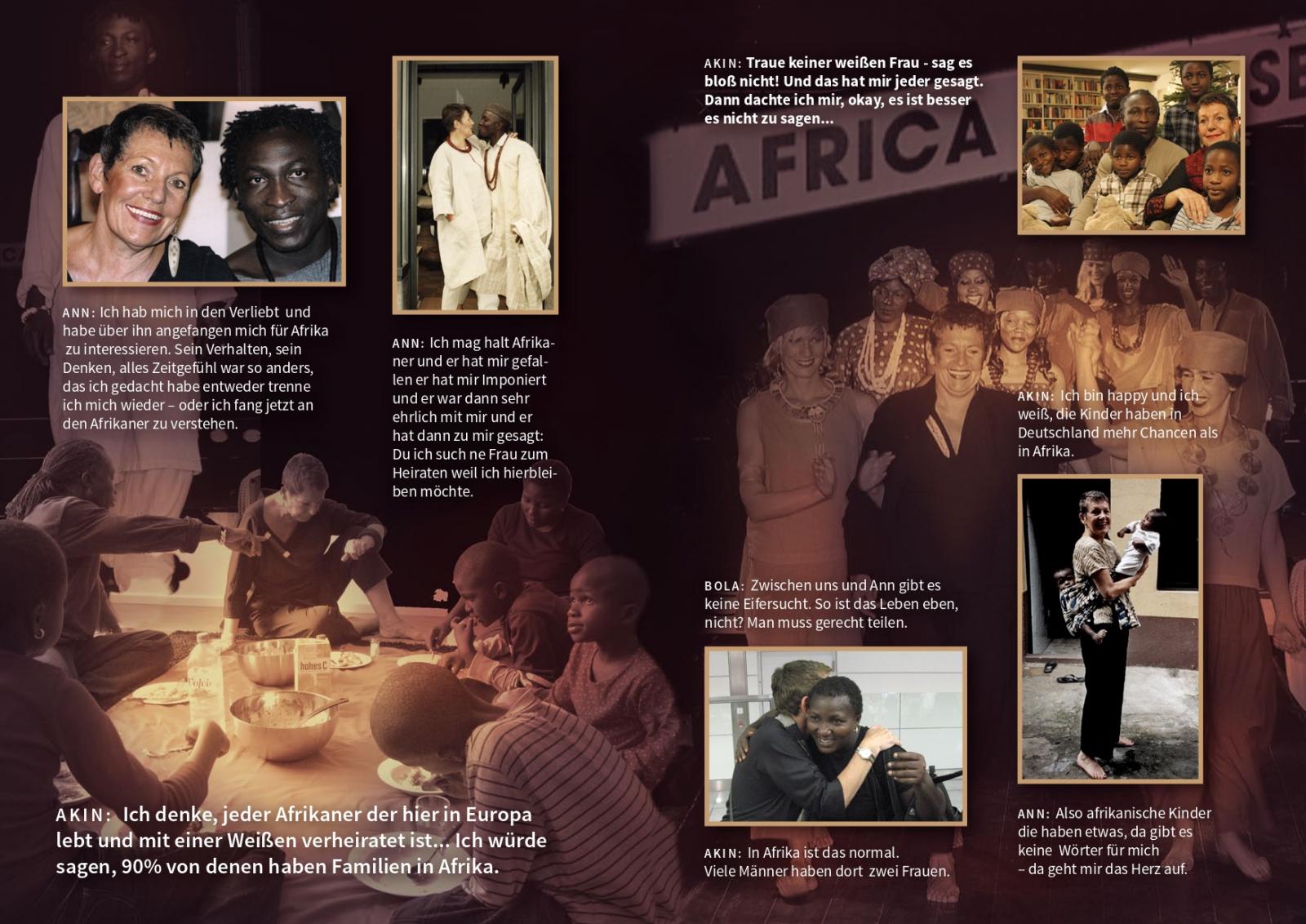 Eine dokumentarische Langzeitbeobachtung (1999-2016) ganz nah drann über zwei Leben zwischen den Tabus. Ann und Akin. Die Geschätsfrau rettet Afrikaner vor Ausweisung durch Heirat. Sie findet in ihm einen jüngeren, fleißigen und tüchtigen Partner fürs Leben.